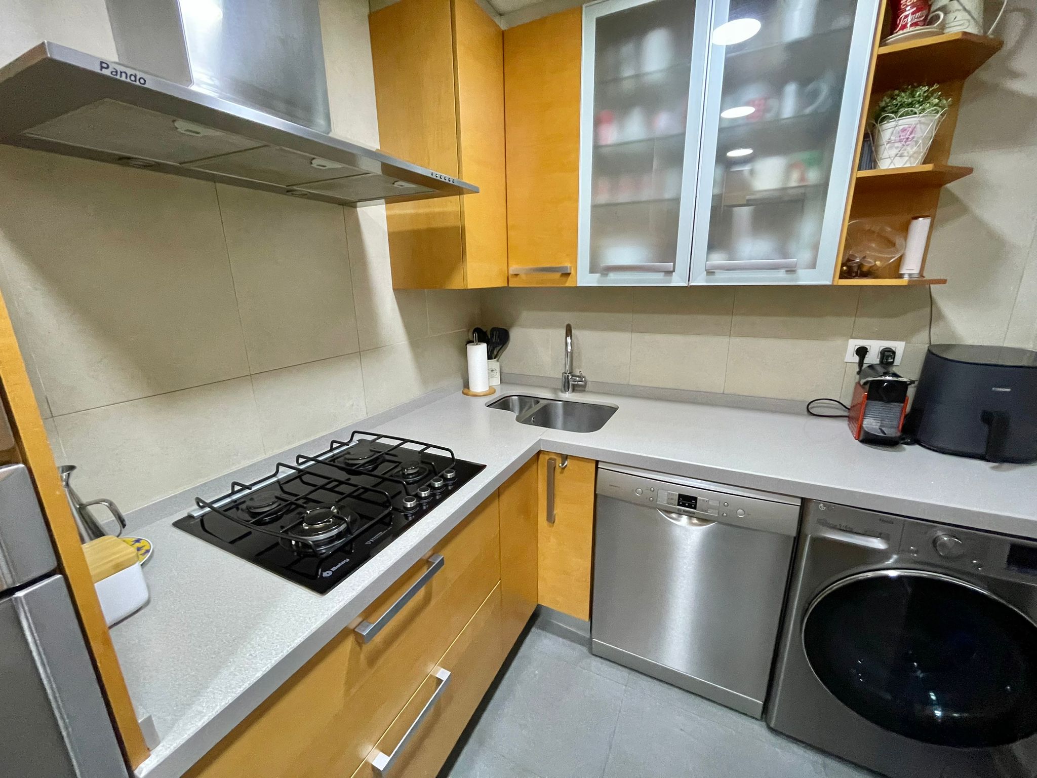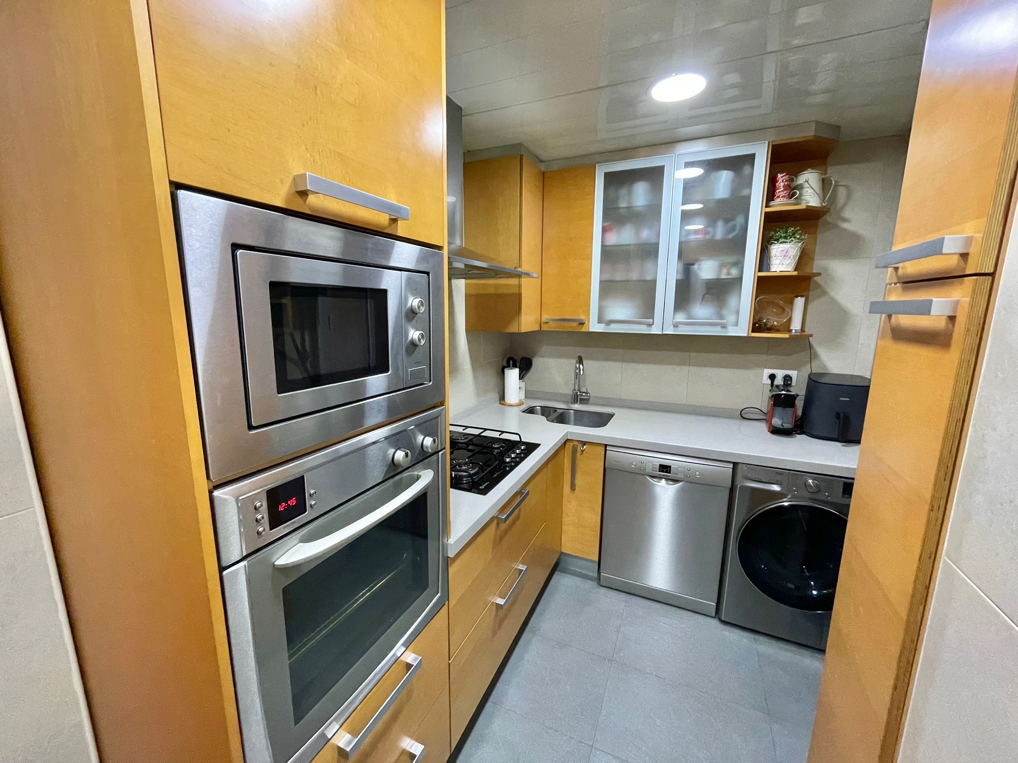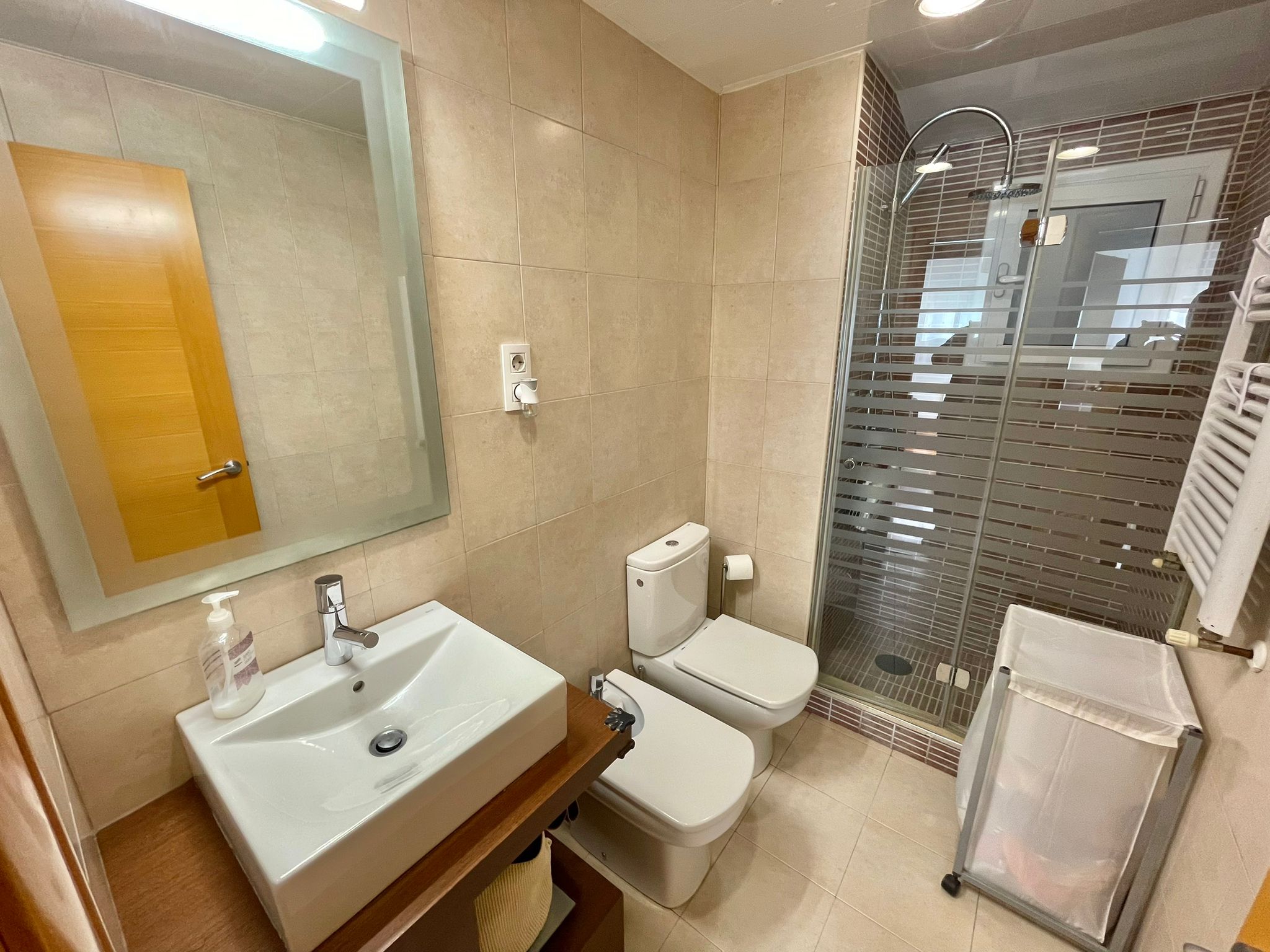 Cocina y baño completos. La vivienda dispone de un gran salón comedor exterior, orientación Tarragona, con un amplio ventanal.
